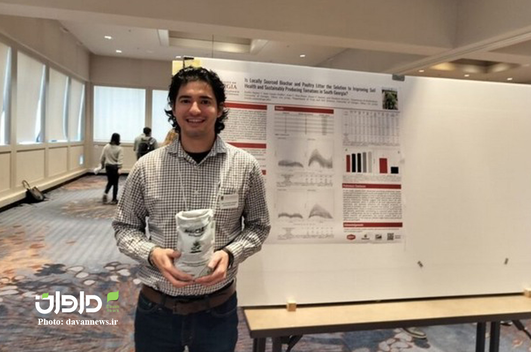 دانشجوی تحصیلات تکمیلی دانشگاه جورجیا، امیلیو سوارز رومرو، پوستری از تحقیقات بیوچار را در سمپوزیوم سبزیجات انجمن علوم باغبانی آمریکا در منطقه جنوبی در آتلانتا ارائه میدهد.