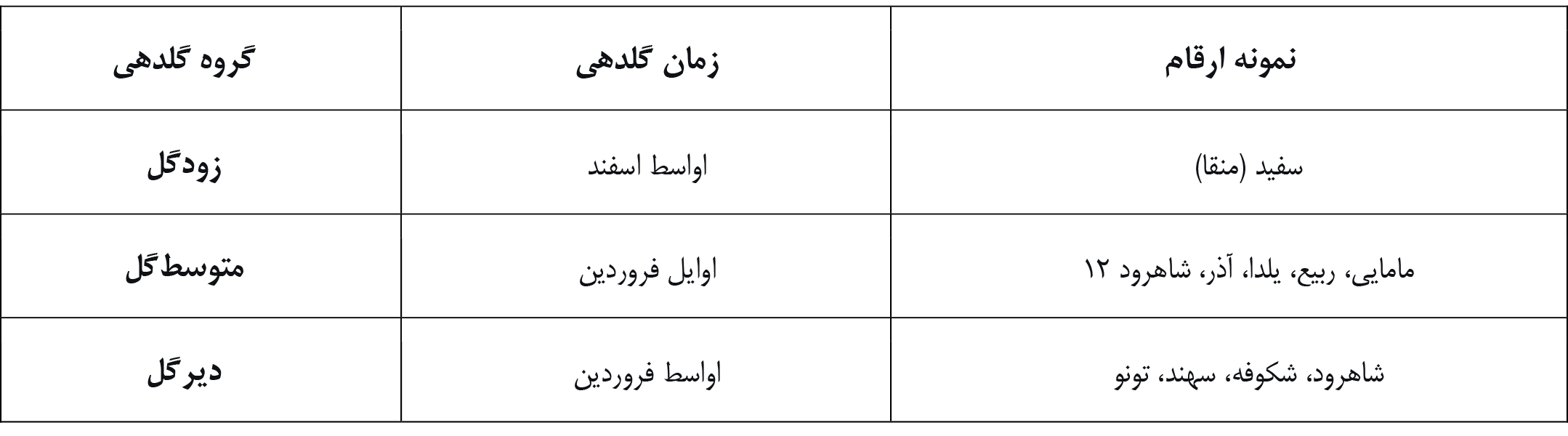 ۱.۴ زمان گلدهی ارقام