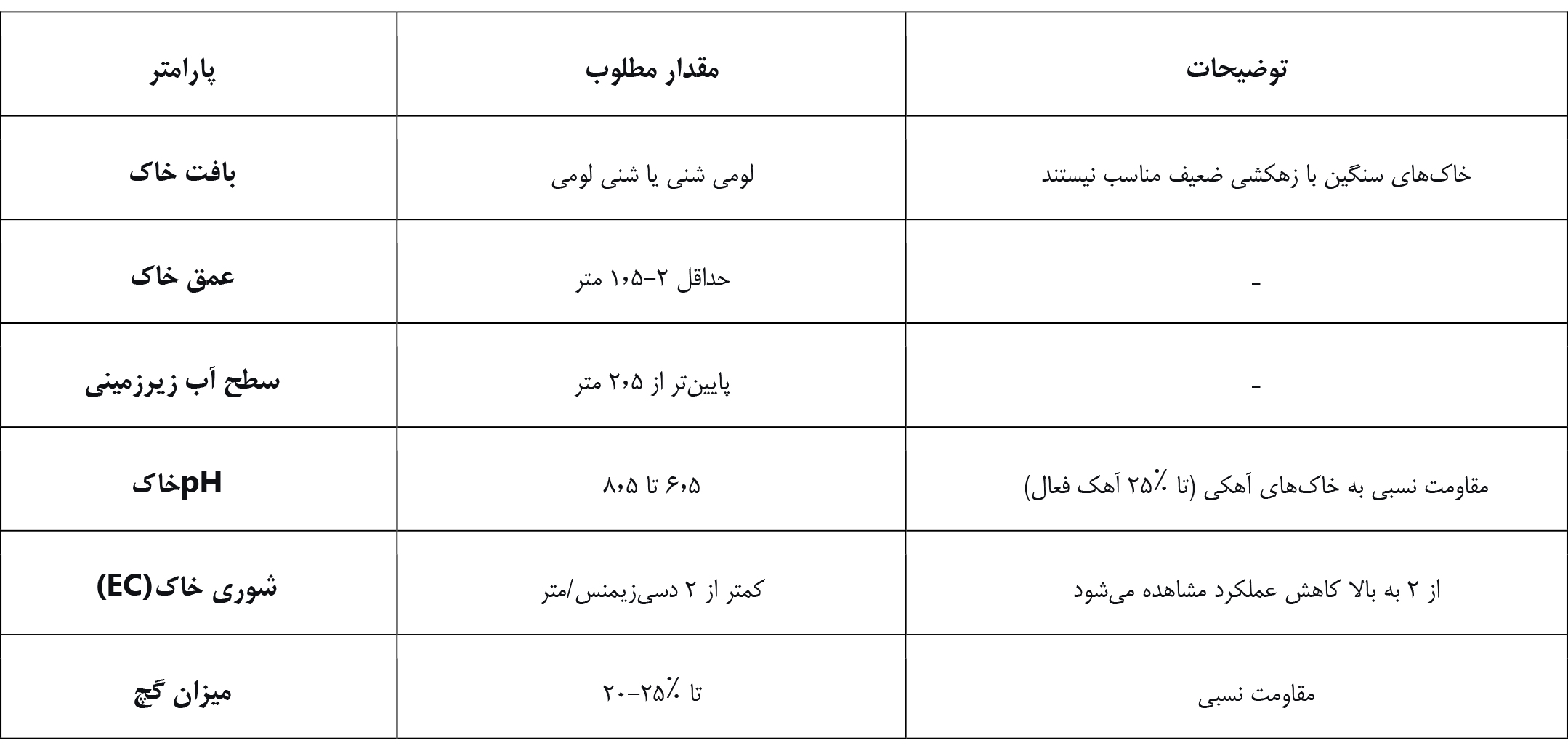– عدم کشت در خاکهای با آهک فعال بیش از ۱۰٪