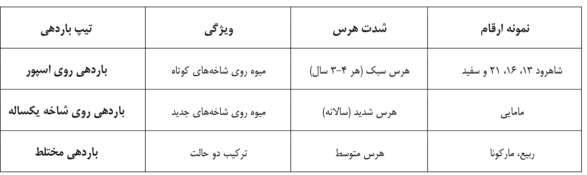 ۴. هرس فرمدهی تا سال چهارم ادامه مییابد