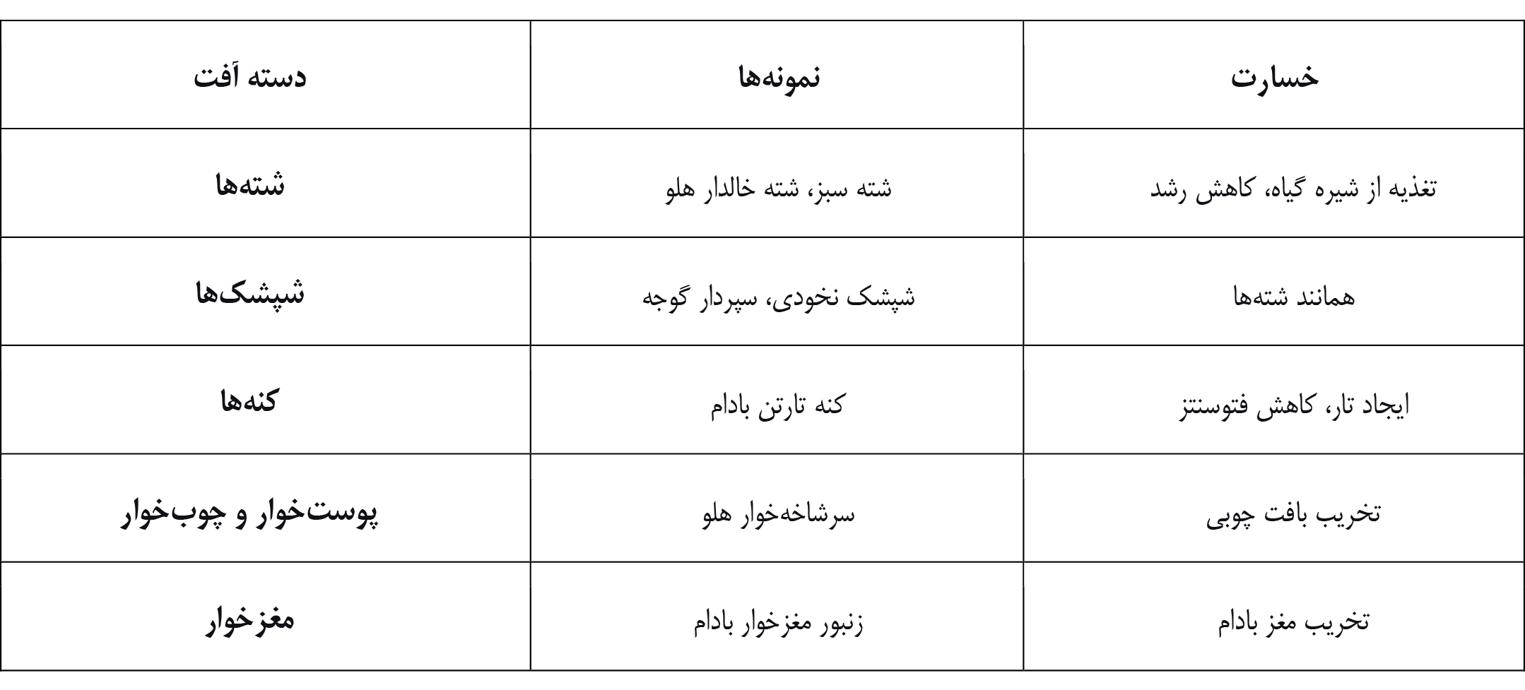 آفات اصلی: