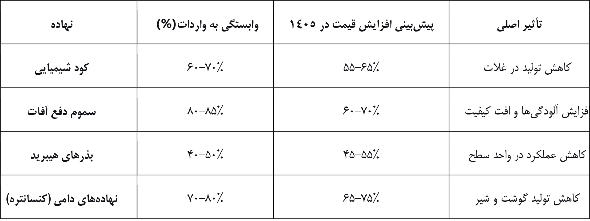 سال ۱۴۰۵ برای بخش کشاورزی ایران سال آزمون سیاستهای اقتصادی دولت خواهد بود. حذف ارز ترجیحی در شرایط کنونی اقتصادی، فشار مضاعفی بر این بخش وارد میکند که میتواند به افزایش قابل توجه قیمت محصولات کشاورزی و کاهش امنیت غذایی منجر شود.